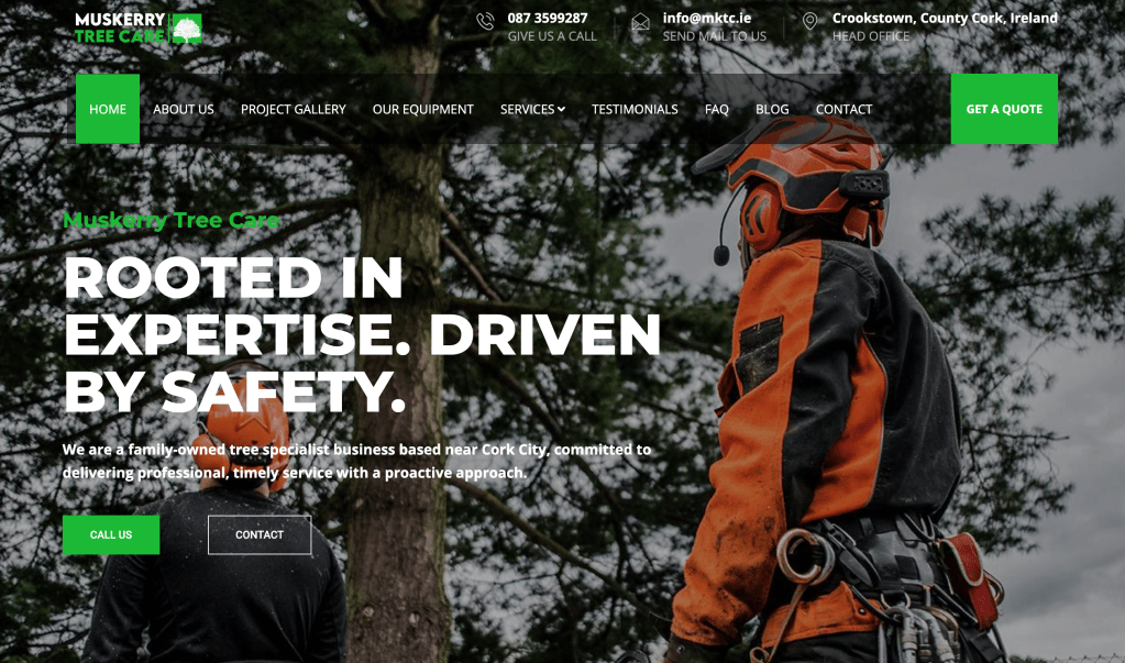 - Visual Refresh: The site was revamped with a clean, contemporary aesthetic that reflects Muskerry Tree Care’s professionalism and expertise.