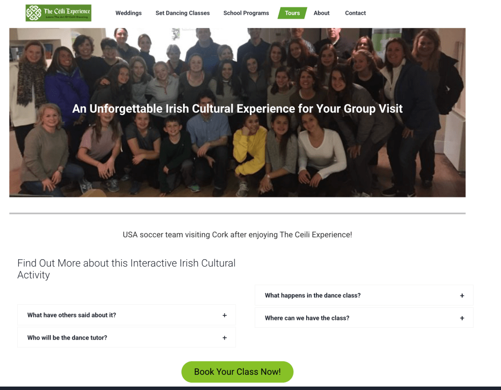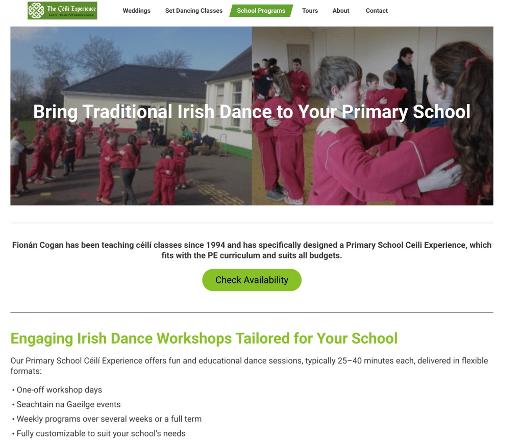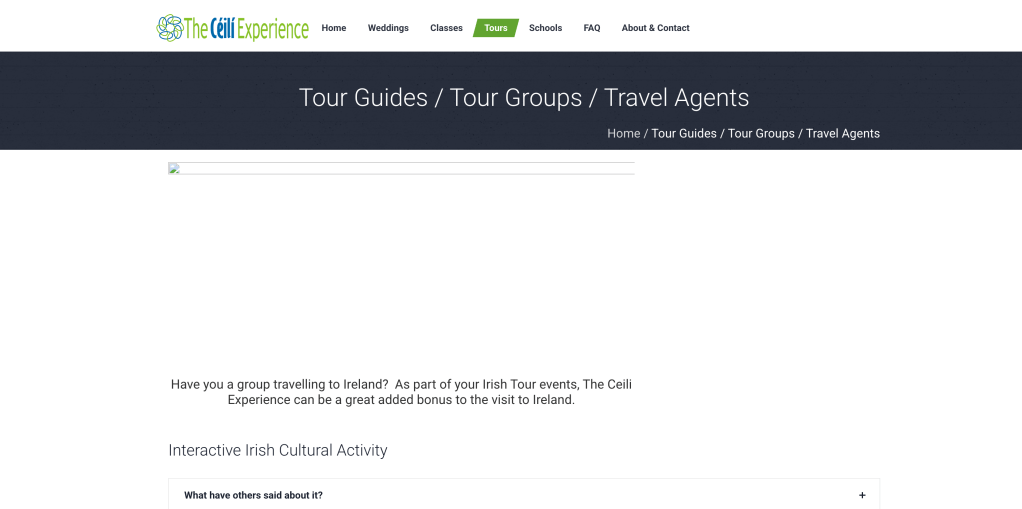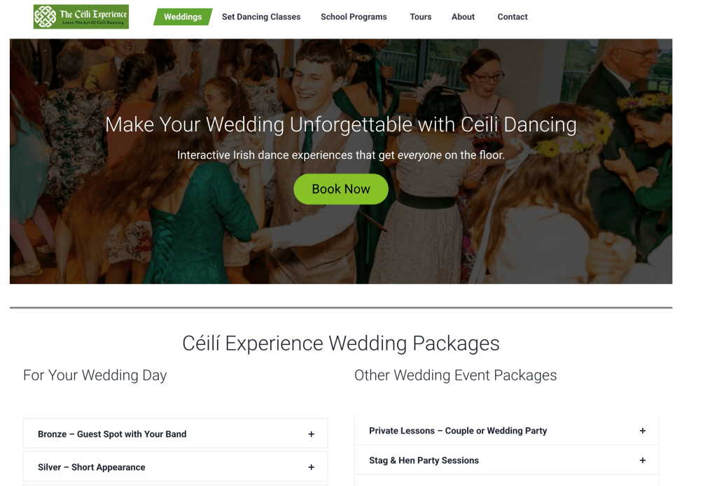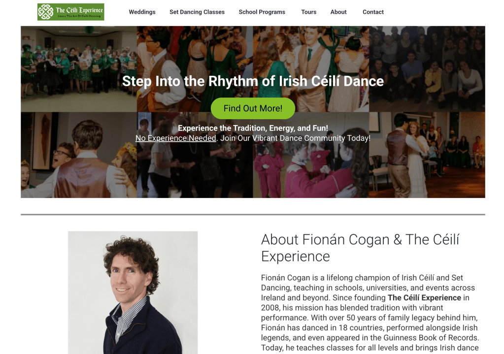 - Content Refinement: Website content was rewritten to be more concise and engaging, enhancing clarity and better communicating The Céilí Experience’s core message and offerings.